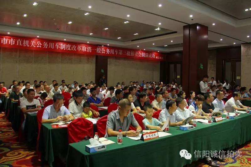 2016年7月23日(星期六)上午九時三十分,由我公司主辦的“信陽市市直機關(guān)公務(wù)用車制度改革取消一般公務(wù)用車第三批拍賣會”在中樂百花酒店三樓會議室隆重舉行,寬敞明亮的會議室座無虛席,近160余人前來參加本次拍賣會!本次拍賣會拍賣標的共計38輛,成交35輛,成交金額高達151.75萬!
